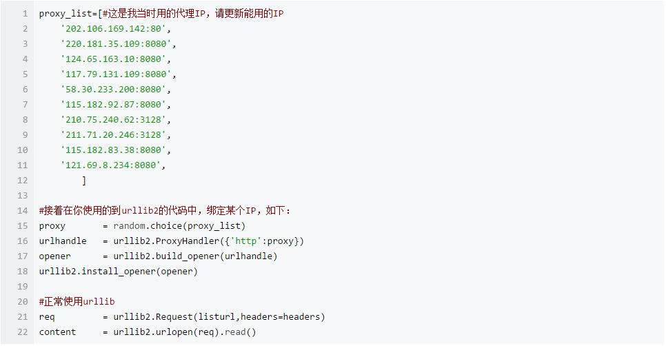 以上分享了三种常见的需要返回403错误的场景,为了防止返回403,防止爬虫被封,我们在抓取数据时需要及时更换不同IP,python使用代理爬取的方法: